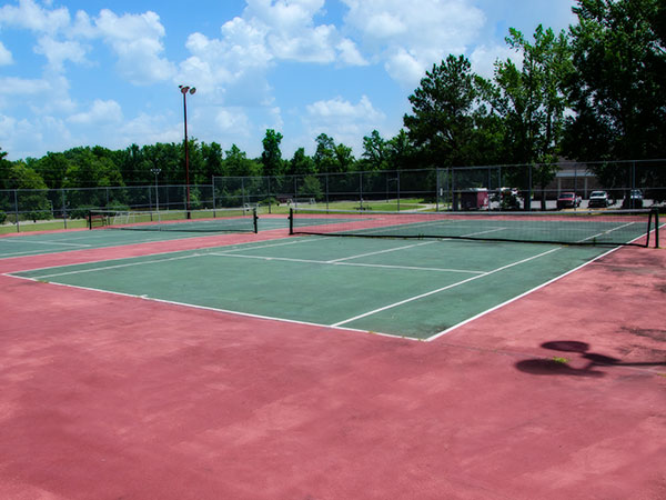 Two lighted tennis courts are located beside Field #8 on the west side of the park.
